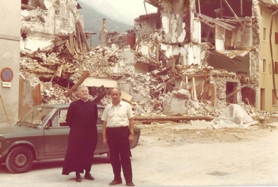 Friuli 1976 – Mons. Zalambani e don Antonio Obovali in visita per i primi soccorsi alle popolazioni colpite dal terremoto